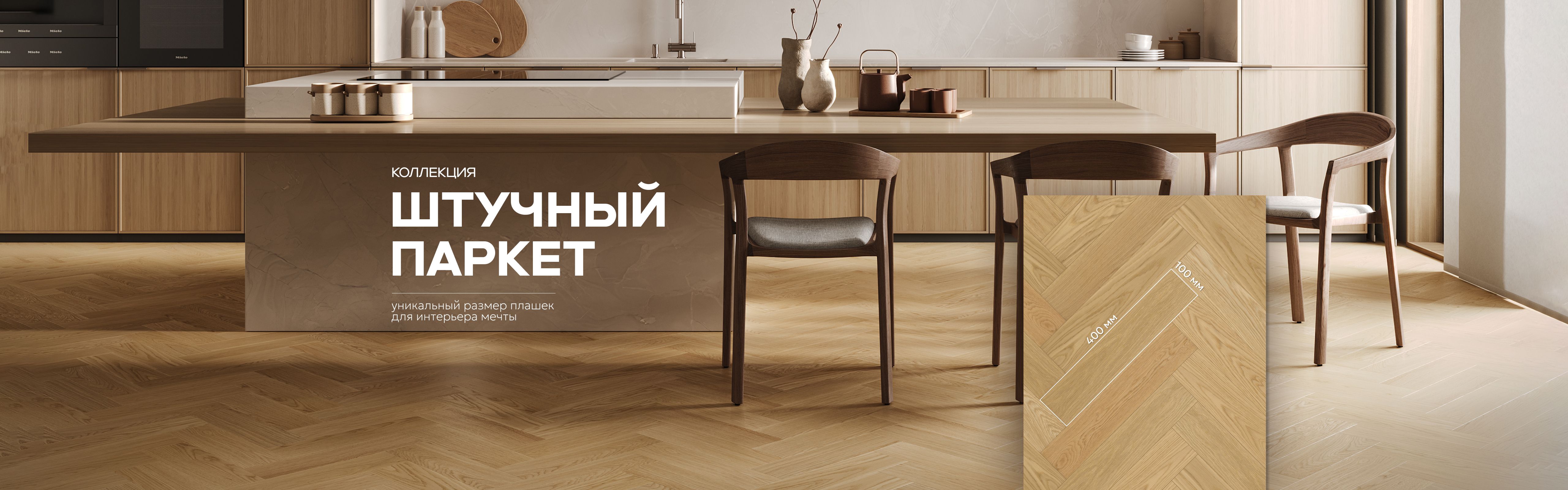 В коллекции нет сложных узоров, как в «ёлочке» или «шевроне», — только прямые линии, строгая геометрия и универсальность, которая делает пространство пола максимально понятным.