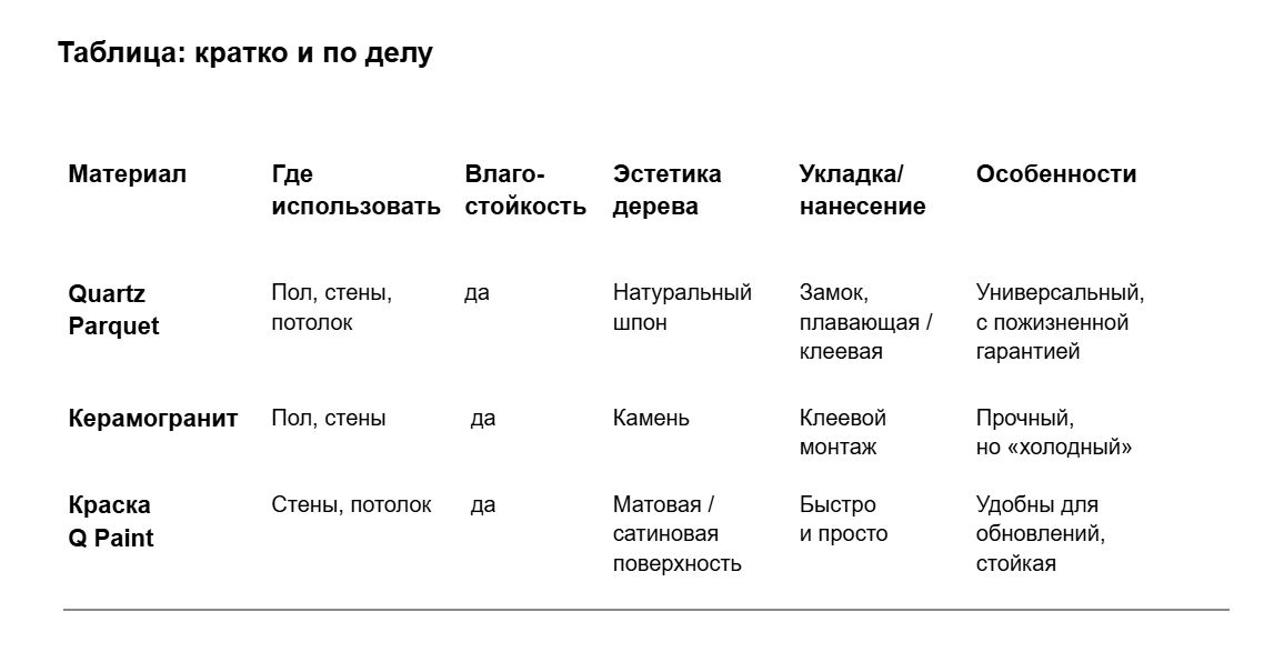 Где использовать? Пол, стены, откосы и подоконники, потолок, колонны — куда фантазия заведёт! И да, даже в ванной, коридоре или на балконе — кварцевый паркет не боится ни влаги, ни перепадов температур.