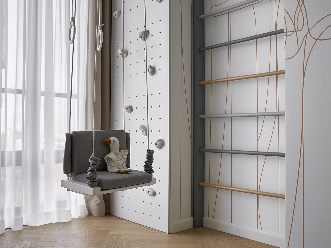 В зонах отдыха мебель округлых форм, натуральные материалы и теплые оттенки для придания мягкости.