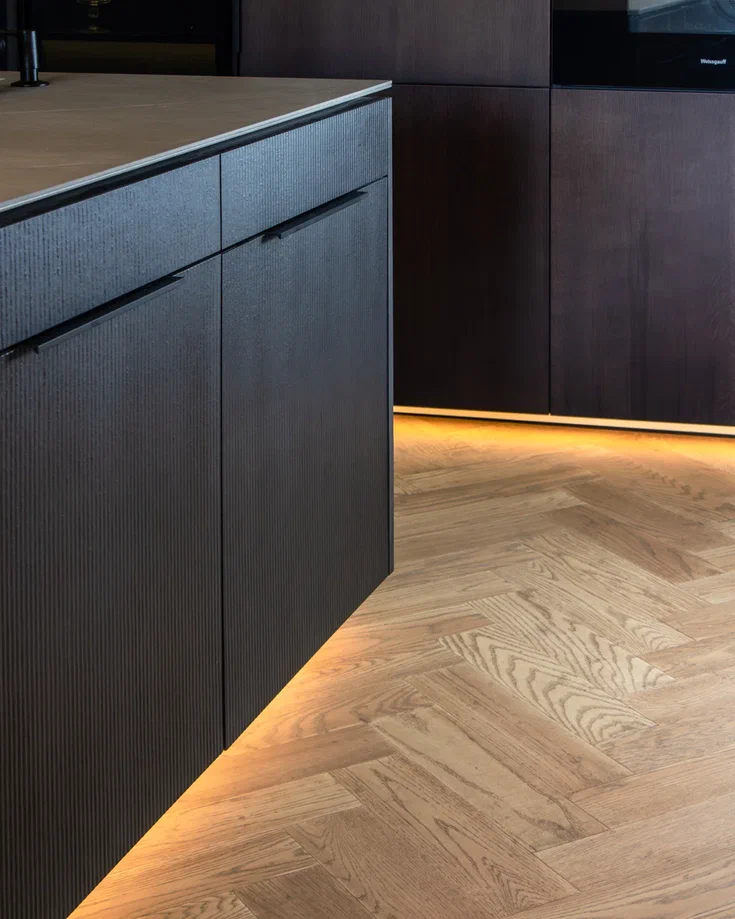 Вяз Кенигсберг — экзотическое дерево с интересным контрастным рисунком. Эти рельефные прожилки на полу, элегантно сложенные в рисунок ёлочкой, так и хочется разглядывать в тени камина.